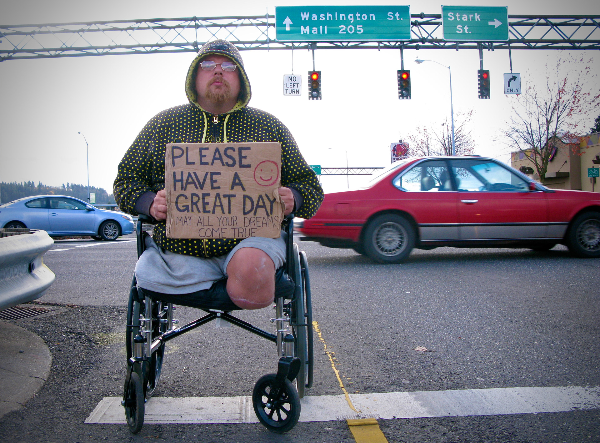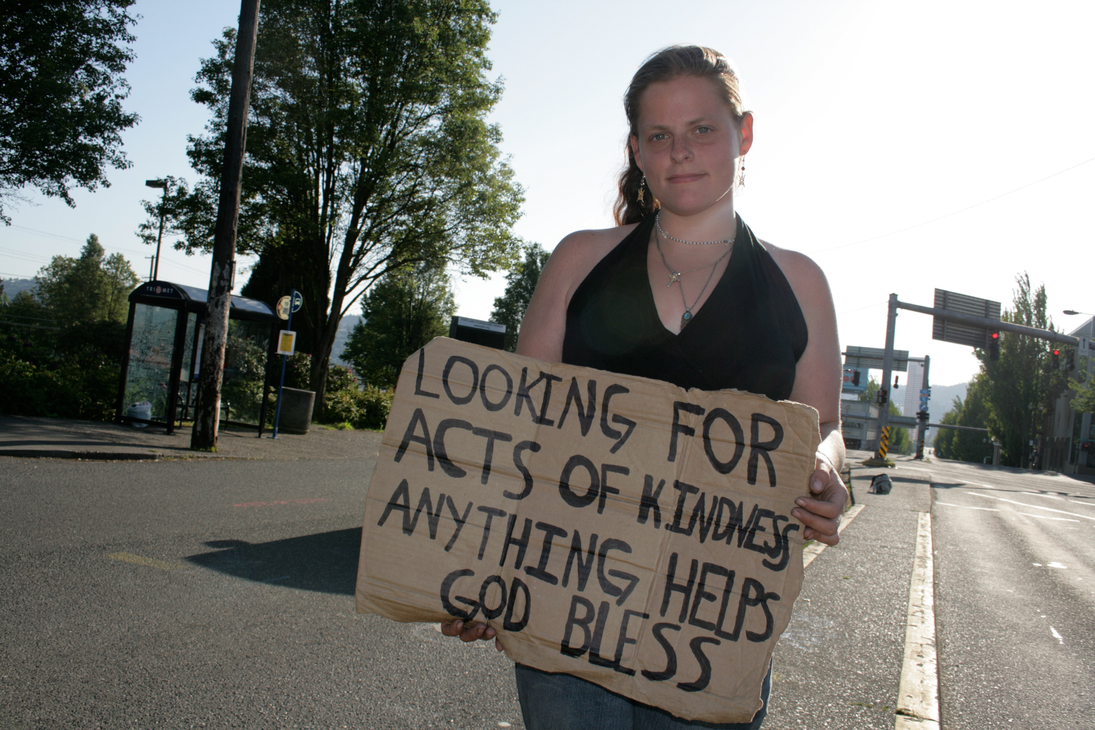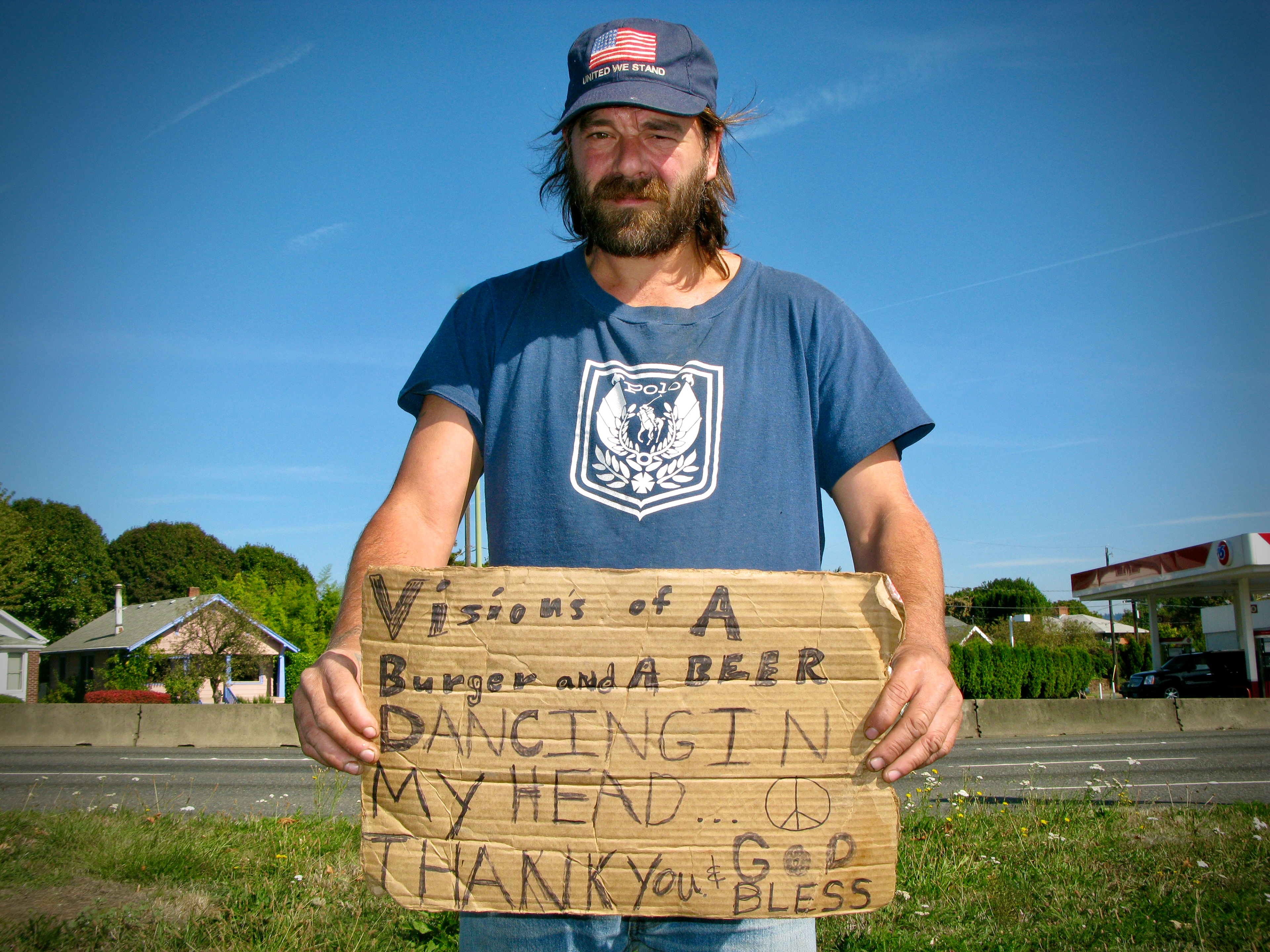On street corners and freeway exits there were ordinary people with nothing much left but a plea to be heard, a sense of humour or a well wish to others. Confirming what I believe, that we humans are good even in our worst moments.